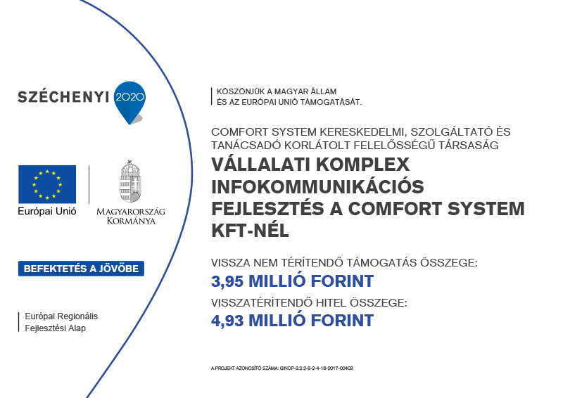 Projekt címe: Vállalati komplex infokommunikációs fejlesztés a Comfort System Kft-nél